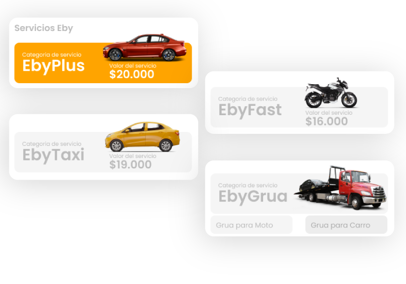 En Eby, nos enorgullece introducir una función revolucionaria que va más allá de la movilidad cotidiana: ¡el Servicio de Asistencia de automóvil! Ahora, los usuarios tienen la capacidad de solicitar una grúa tanto para motos como para automóvil, brindándote una solución integral para cualquier situación de emergencia en la vía.