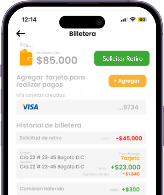 En Eby, creemos en la transparencia y en brindarte el control total de tus finanzas de viaje. Es por eso que hemos incorporado una funcionalidad de billetera en nuestra aplicación, diseñada para que tengas un seguimiento claro y conveniente de tus gastos y ganancias.